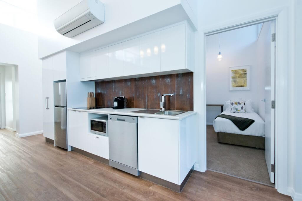 - Cooktop, microwave, dishwasher & pod coffee machine